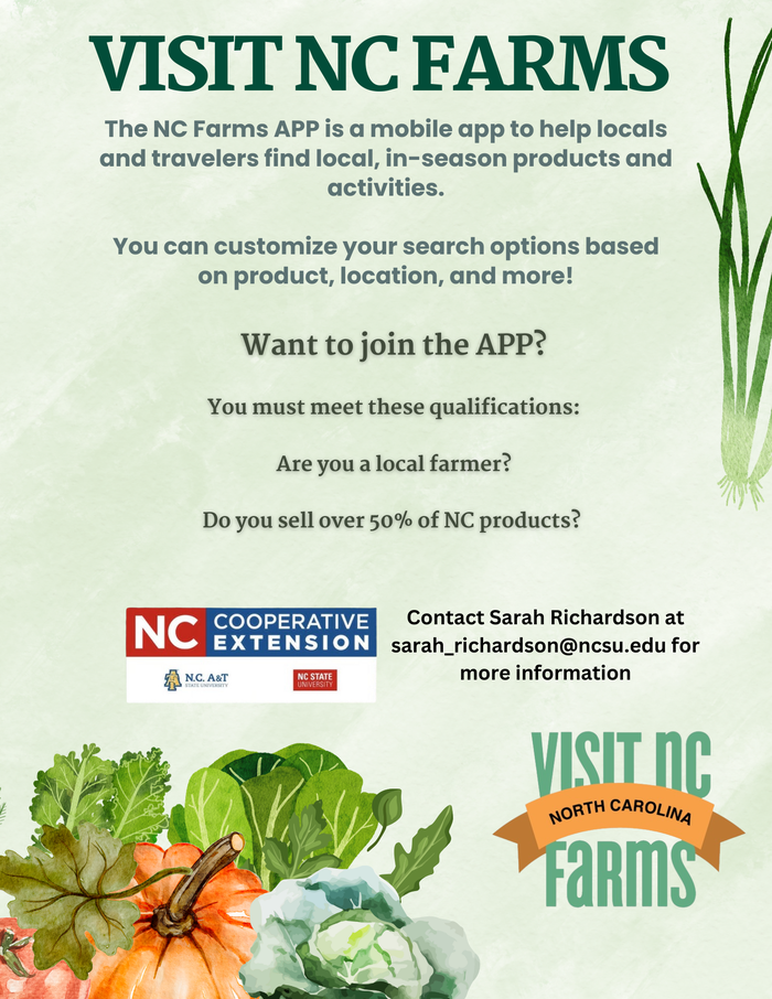If you are a local grower interested in being a part of the Visit NC Farms App please see the flyer below: